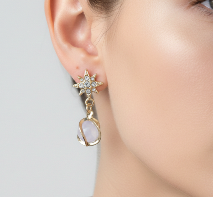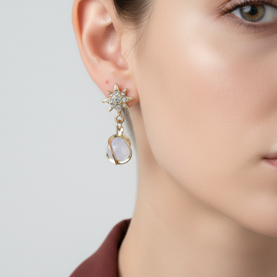 • Chic Celestial Style: The second pair showcases a sparkling crystal-studded star with a unique wrapped stone drop, ideal for parties, dates, or modern casual looks.