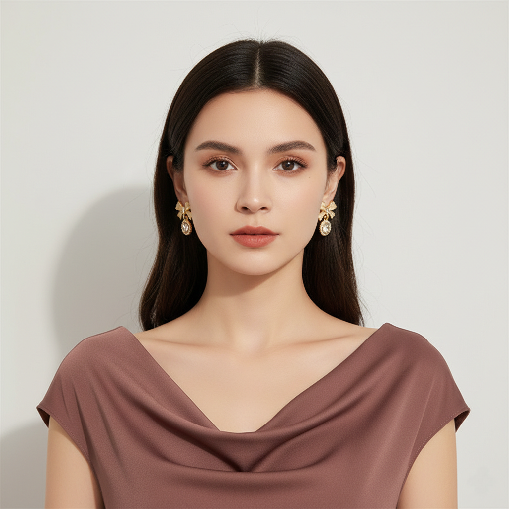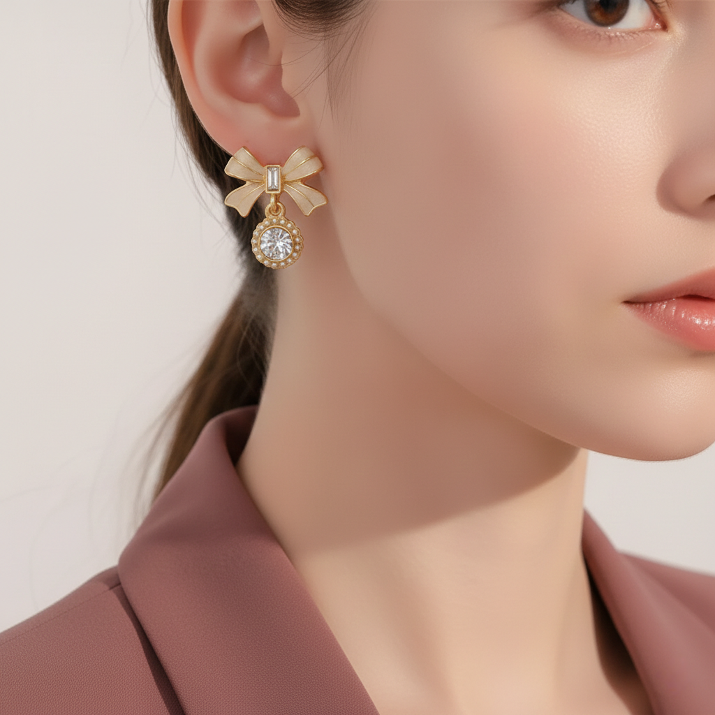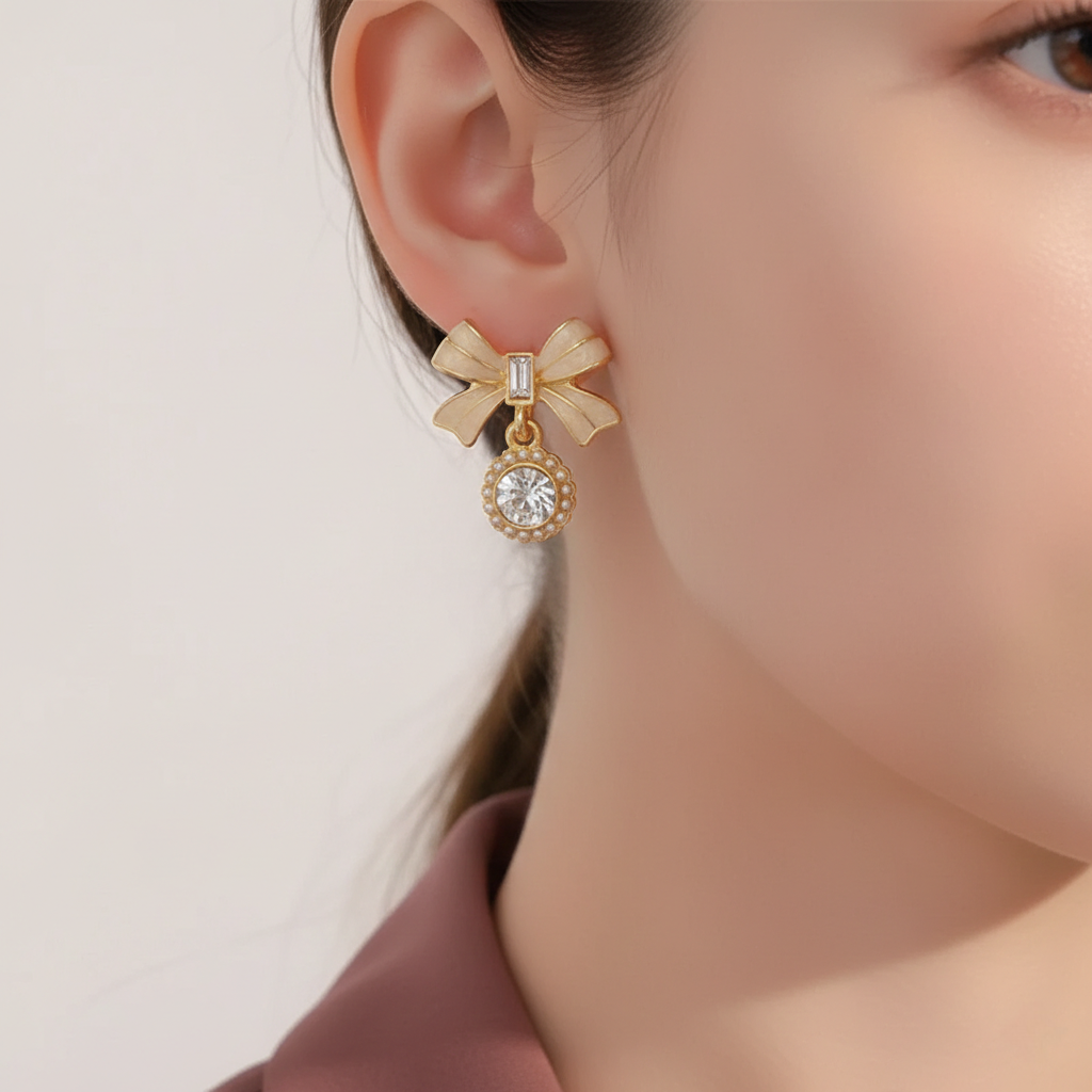 A premium pack of two statement drop earrings featuring crystal bow and crescent designs with elegant detailing.